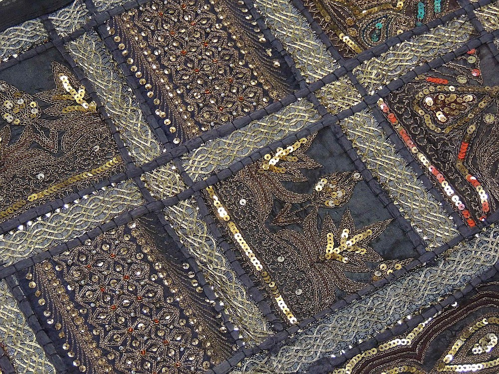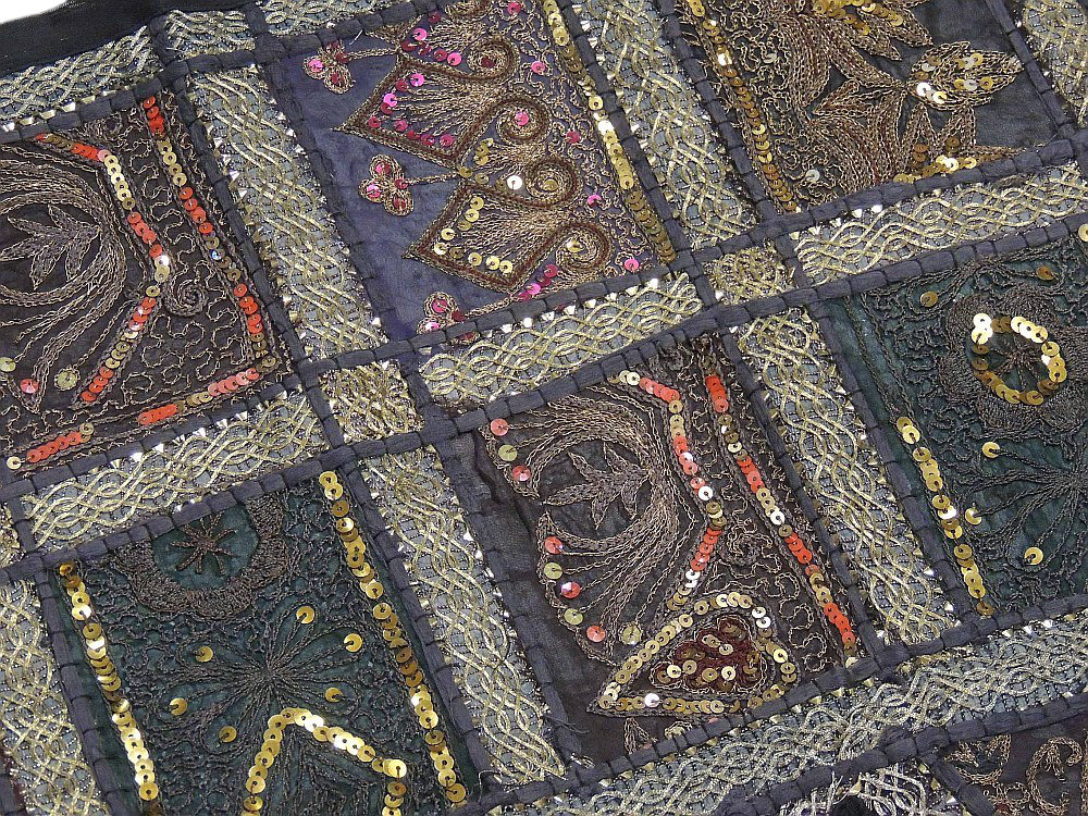 Note: Some beads may be missing - this is not an imperfection. Patches used for creating this masterpiece are from antique wedding saris. Mirrors are antique and some may be cracked or broken.