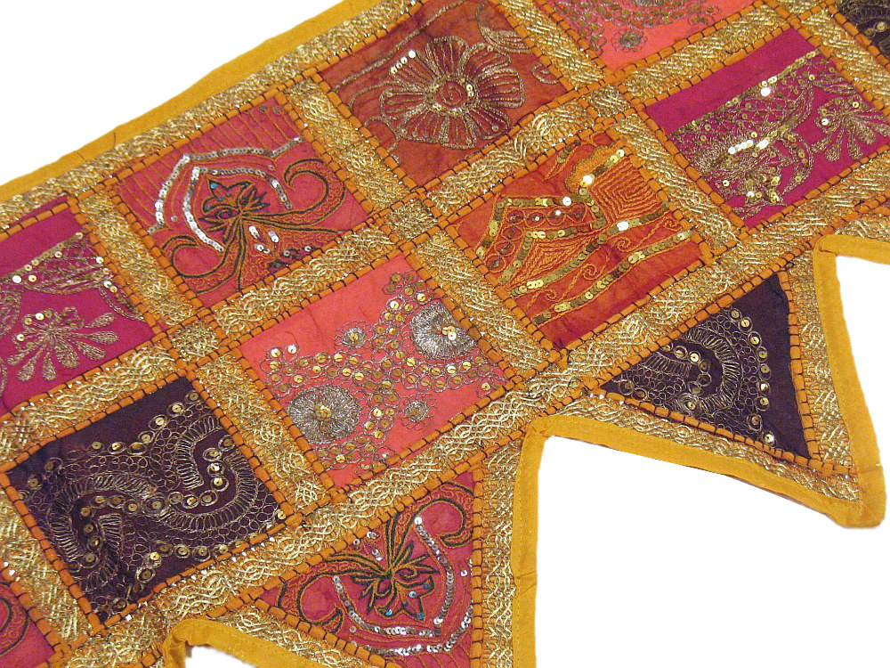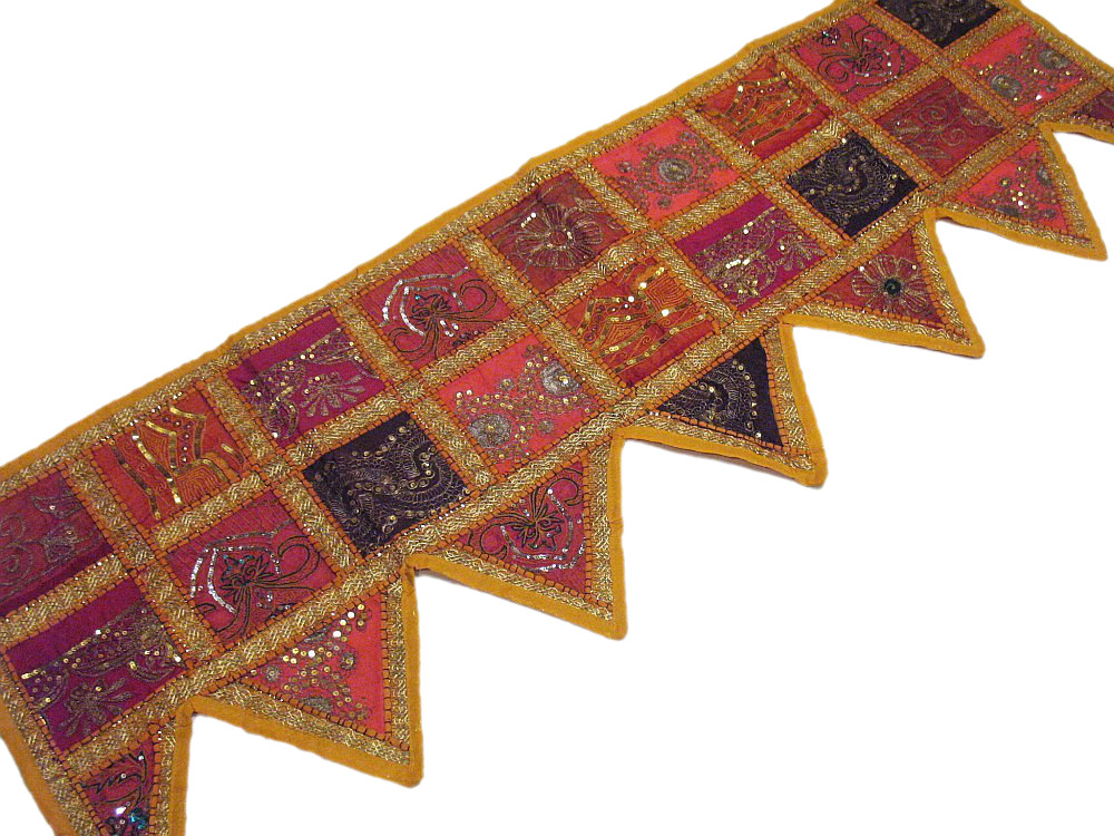 Parts of it are gold & silver toned, metallic threads, springs and coils. A 0.5" trim lends character to this magnificent tapestry runner. This spectacular piece of workmanship & skill is an amazing collage of hundreds of intricate antique mirrors, Zardozi* work, beads, discs, metallic wires, Sequins, Faux Pearls & what not.The sparkling embellishments in gold & pearl work will lend a spectacularly ethnic look and add style to your room. Transform your window / door / wall with the royal grandeur of Indian culture.This beaded & hand embroidered Toran is guaranteed to bring you lots of compliments and is truly a bohemian crazy, conversational piece of accessory that everyone's room needs.Hardly ever seen in any departmental store, this is a fabulous & unique gift for your loved ones!Don't miss this fabulous offer!