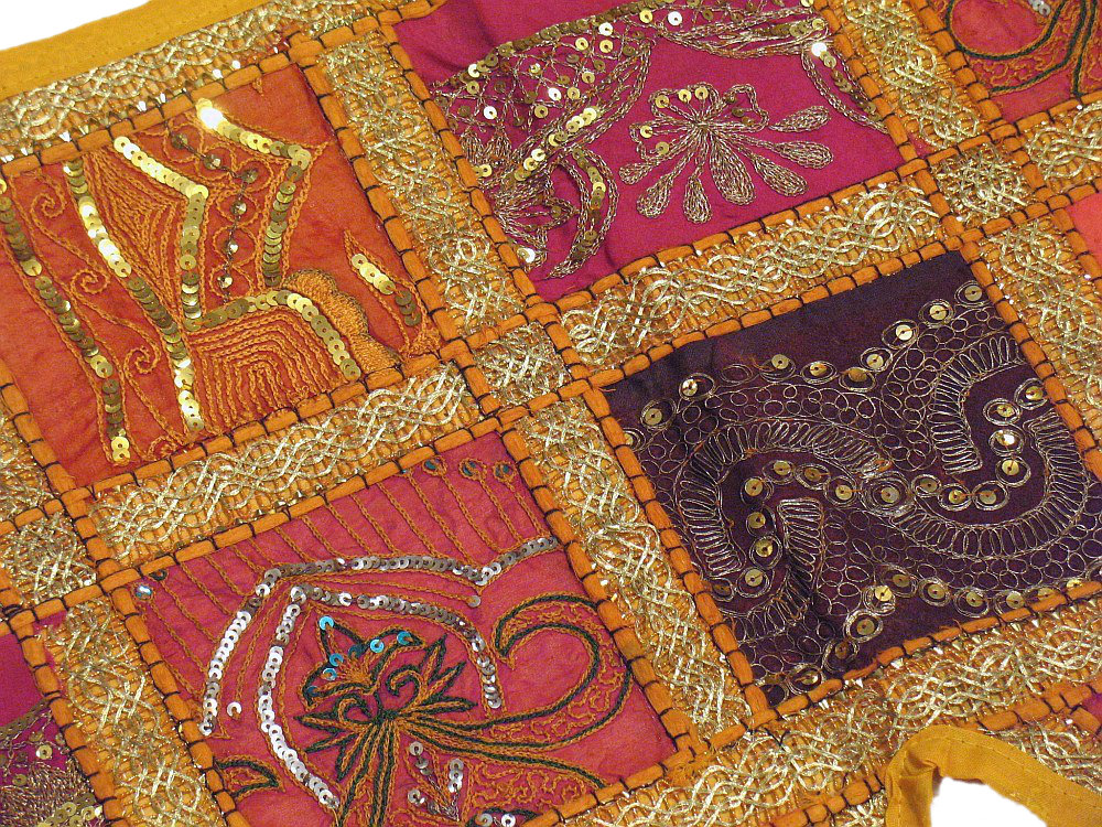 Note: Some beads may be missing - this is not an imperfection. Patches used for creating this masterpiece are from antique wedding saris. Mirrors are antique and some may be cracked or broken.