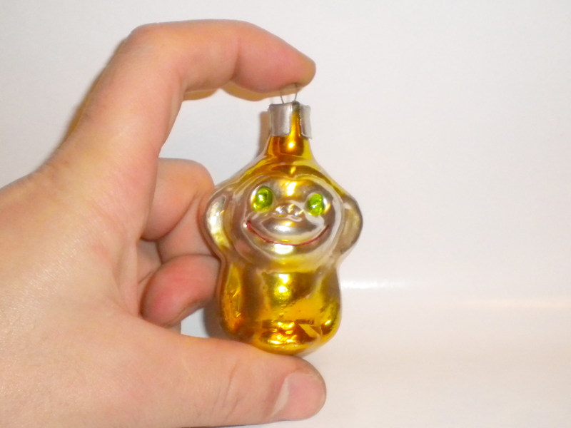 MONKEY Vintage Glass CHRISTMAS ORNAMENT Russian USSR