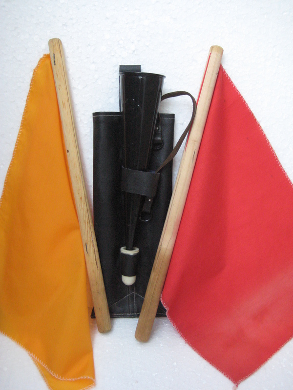The set consists: manual hooter, 2 alarm tags (yellow and red), a cover for tags and hooter. Manual hooter is made of iron and supplied by a plastic mouthpiece.