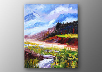 Gallery wrapped and stretched. The staples-free sides of the canvas are painted. Hangers are mounted. The painting is ready to hang as is.