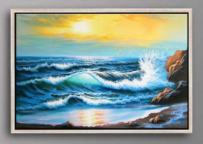 Sales 36" HUGE ART OIL PAINTING SUNSET AT SEA SEASCAPE