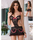 Babydoll with Thong has ruffled edges, bow accents and clips in the back. Includes thong.