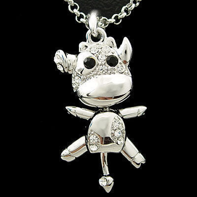Twinkling Lovely Cow USE SWAROVSKI Crystal Necklace