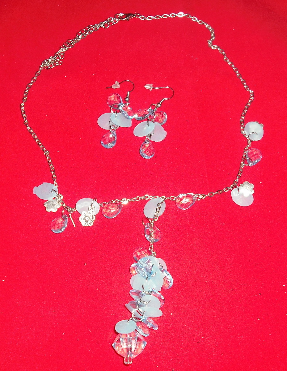 .This necklace earrings Set is high quality made. The item color is : skyblue. Item size in CM is : 40 , and in Inches is : 15.6 inch