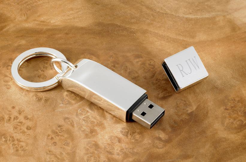 More than just a key chain, this unique personalized item is also a 512 mb flash drive! Both elegant and useful, our personalized flash drive key chain is sterling silver-plated and bears the initials of the owner. Large enough to handle easily, but small and light enough to fit in a pocket or purse, this personalized key chain is an ideal gift for students or executives.