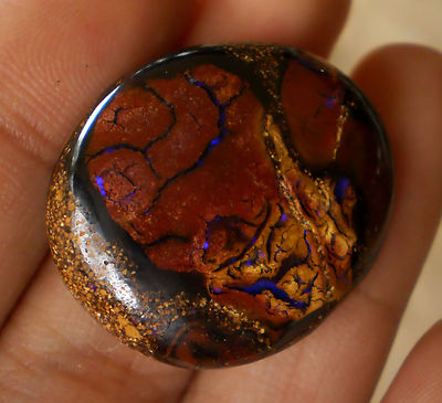beautiful picture stone blue/GREEN STONE boulder opal "head of a tiger" stone size 21mm solid and untreated origin Queensland Australia