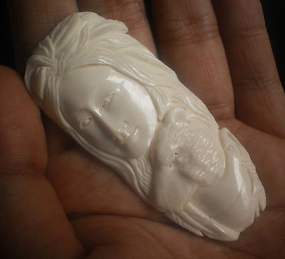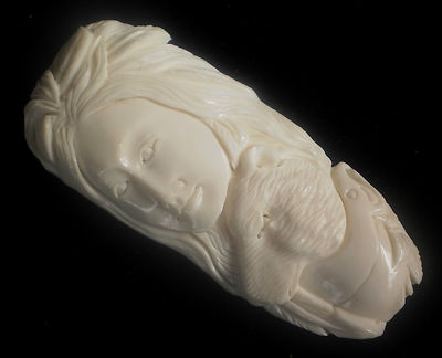 Unique carving from Ox bone, Intricately done by hand by a highly skilled carver, one of a kind art piece for making jewelry or totems. curved on back from natural bone shape