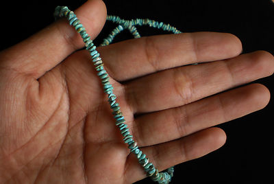 Australian Turquoise strand of beads chip necklace on string blue green EK1