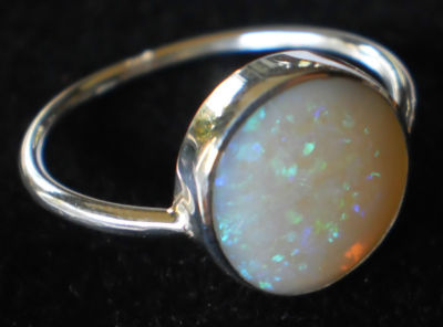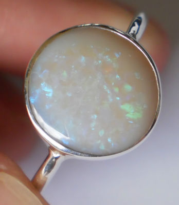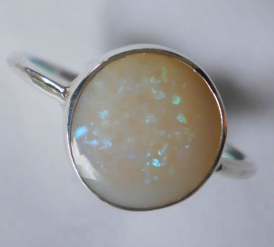 as opal comes back in vogue wear this stunning vintage style ring 11mm stone size colors of blue and green fire amazing crystal opal with bright even fire across the stone make your hand come alive with elegance and color NATURAL SOLID OPAL Polished silver .925 stamped sterling silver brand new from the studio in Bali OPAL IS OCTOBERS BIRTH STONE AND IS KNOWN AS THE QUEEN OF GEMS AS NOTED BY SHAKESPEARE AND OTHERS opal is considered precious and is in fact rarer than diamonds. PAYMENT PayPal only Within 7 days of winning bid