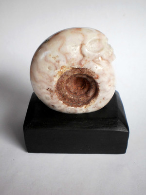 FREE EXPEDITED We ship within 1-2 business days. Shipping times are estimated and not guaranteed, only based on average time which is 2-4 weeks. FOR A LIMITED TIME!!! EXCEPTIONAL QUALITY BEAUTIFULLY FINISHED rarely seen fossil ammonites from Indonesia with hand-carved skull in the opening of the mollusks from the species: Cadoceras. Often referred to as the 'Cannonball ammonites' due to their unusual width. They have been polished all over to show the beautiful suture lines separating the chambers. The picture shows the actual one you will get. PAYMENT Credit cards(mastercard, visa, discover, amex) and Paypal only Within 7 days of winning Shipping Usually
