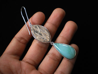 Australian Chrysoprase and Indonesian Fossil palm Earrings