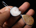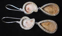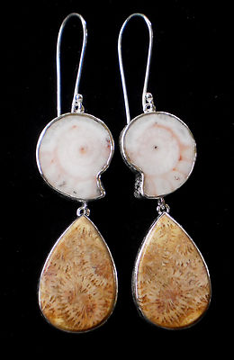BEST QUALITY .925 silver agatized Coral Indonesian ammonite cab earrings EW3