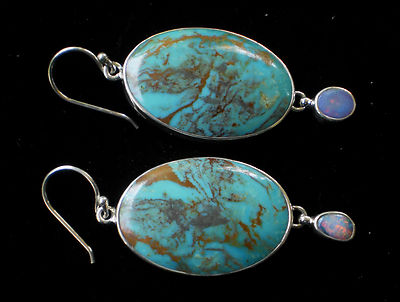 BEST QUALITY SOLID .925 silver Australian Opal KingmanTurquoise earrings GN73
