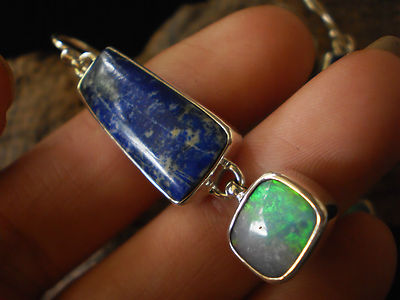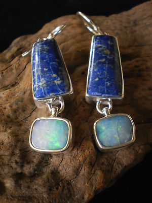 Highest quality on Ebay SOLID .925 silver + Australian Opal Lapis earrings gn72