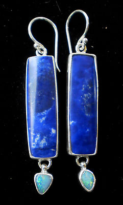 Highest quality on Ebay SOLID .925 silver + Australian Opal Lapis earrings GN69