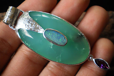 beautiful Chrysoprase, doublet opal and amethyst Pendant