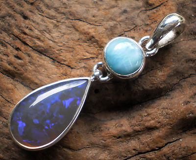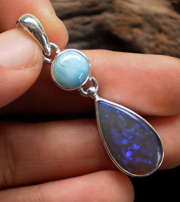 Best quality on Ebay .925 silver Australian Opal larimar pendant necklace GN67