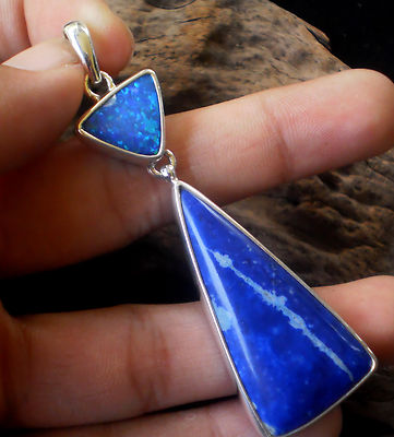 Best quality on Ebay .925 silver Australian Opal Lapis pendant necklace GN12