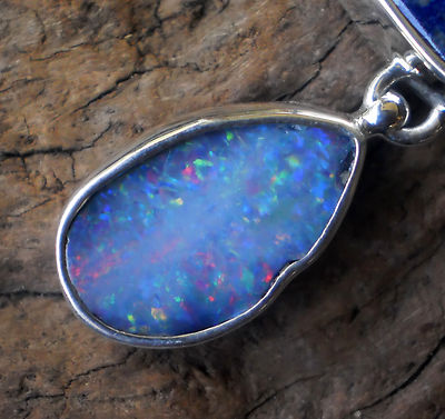 Best quality on Ebay .925 silver Australian Opal and Lapis pendant necklace GN8