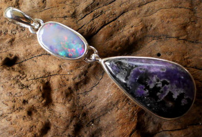 Best quality on Ebay .925 silver Australian Opal Sugilite pendant necklace GN34