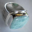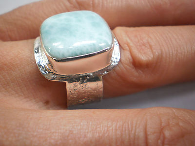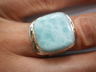Solid Sterling silver, Larimar Ring Artisan high quality Adjustable modern ER4
