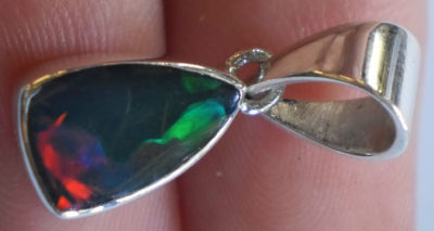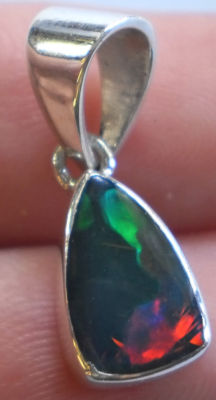 Beautiful Ethiopian opal doublet pendant with and amazing bright red/blue/green colors .925 stamped sterling silver brand new from the studio in Bali A doublet is a slice of opal laminated onto a backing, in this case Queensland boulder stone this is to make it more affordable so more people can own one, BECAUSE Opal is considered precious and is in fact rarer than diamonds