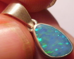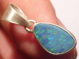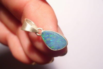 nice even color looks like a brush stroke pattern or raindrops, beautiful opal doublet pendant with a modern brushed finish .925 stamped sterling silver brand new from the studio in Bali