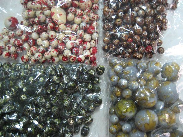 PLASTIC BEADS IMITATION CERAMIC STYLE PLASTIC BEADS, ASSORTED SHAPE/SIZE