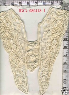 BEIGE AND WHITE COLOR VNECK NECKLINE, MOTIF, SEW ON, APPLIQUE CROCHET AP4887 IN STOCK