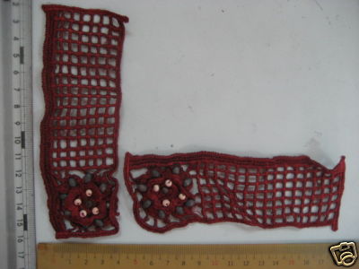 RAYON LACE WITH PLASTIC SEW ON BEADS, MOTIF/PATCH, SEW ON IN STOCK FOR SEW ON CLOTHING OR CLOTHING NOTION ITEMS DECORATION PRICE PER 2PCS RULER MEASUREMENT IN CM, SIZE AROUND 5.5" X 1.5" IF HAVE ANY QUESTIONS PLS EMAIL US OR NEED ADDITIONAL INFO PLS CONTACT~WE ARE MFG EXPORTERS, ANY INQUIRY ARE WELCOME