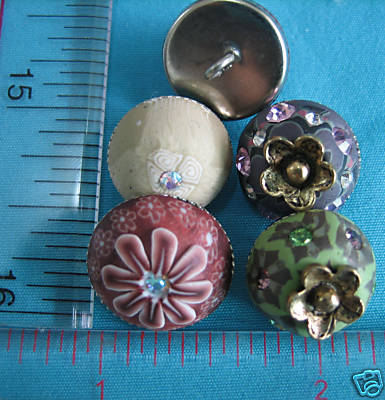 HANDMADE POLY CLAY BUTTON WITH METAL BASE WITH RHINESTONES, HALF DOME SHANK BUTTON IN STOCK
