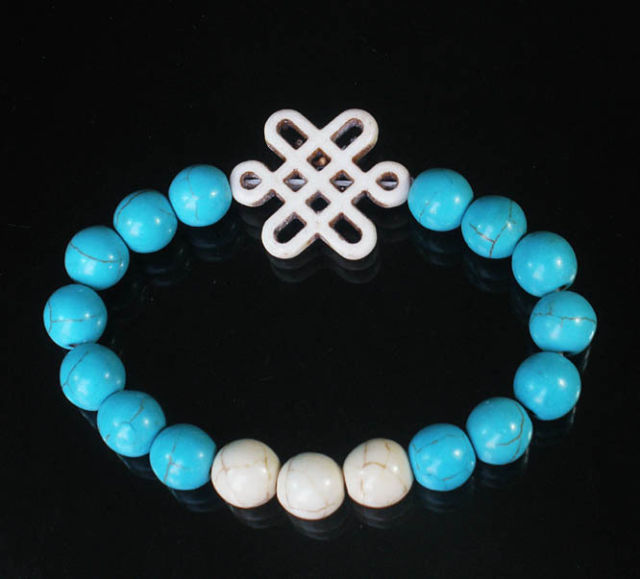 Turquoise Blue & White Bracelet with White Chinese Knot