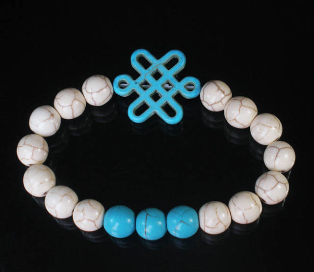 Turquoise White/Blue Bracelet with White Chinese Knot