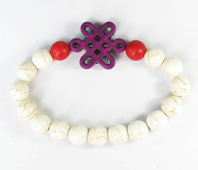 Turquoise White/Red Bracelet with Purple Chinese Knot
