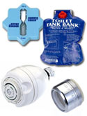 This kit has everything you need to make one bathroom more water efficient, including a Shower Coach, Toilet Tank Bank, Earth Massage showerhead, and water-saving faucet aerator.