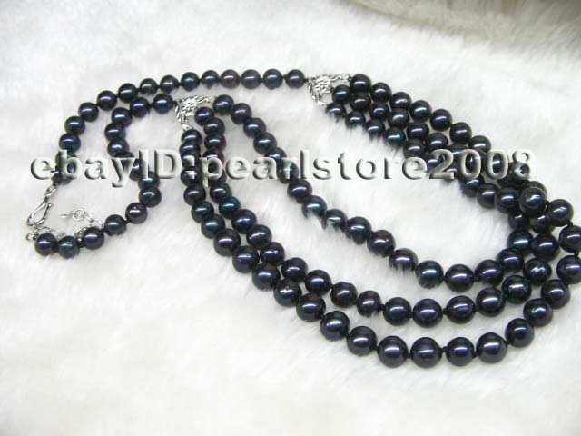 Genuine 6-7mm black freshwater pearl necklace free P&P