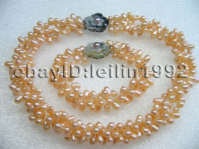 18"/8" 3strds pink freshwater pearl necklace bracelet