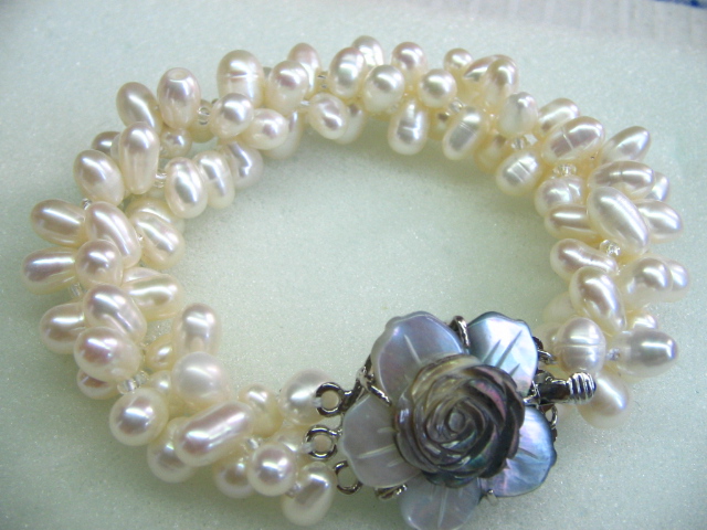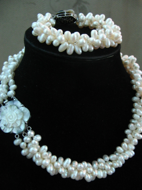 20"/8" 3strds potato white pearl Necklace & Bracelet
