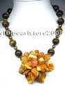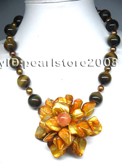 Freshwater pearl&Tiger's stone & Shell flower necklace