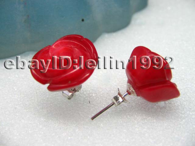 10 Pairs 10mm rose red coral earring 925 silver studs