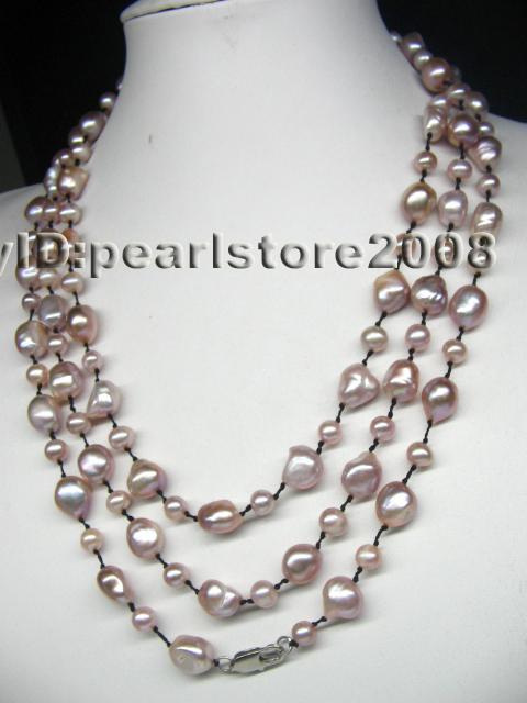 60" 6-9mm purple freshwater pearl 925s clasp necklace