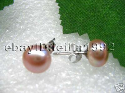 AAA 20 pairs 7-8mm purple pearl earring 925s studs