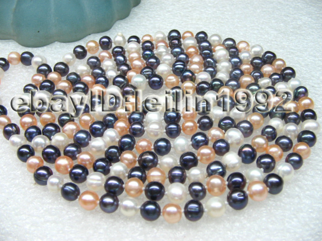 60" 6-7mm mixed freshwater pearl necklace free P&P