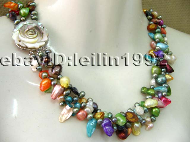 Genuine 3strds multicolor pearl necklace cameo clasp