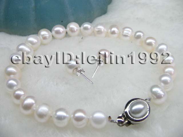 10 sets 7-8mm freshwater pearl bracelets & earring S925