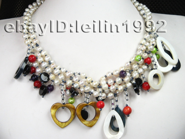 Mixed Shell coral & freshwater pearl necklace free P&P