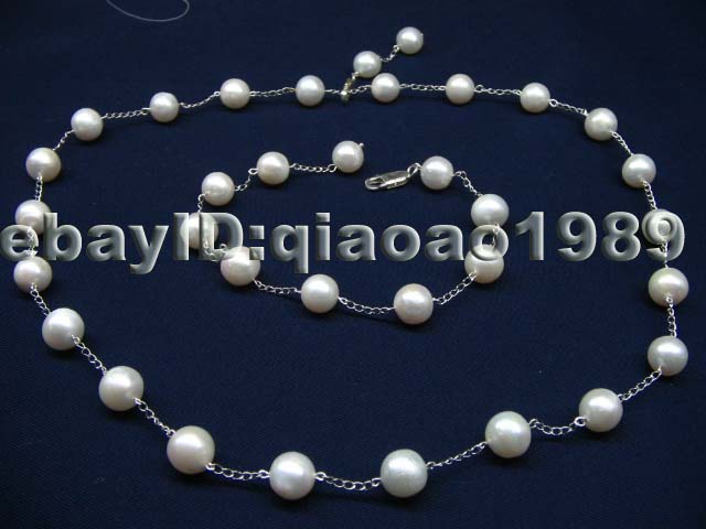 10mm white freshwater pearl necklace/bracelet S925
