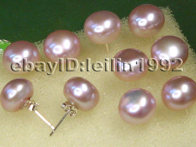 AAA 5pairs 9-10mm purple pearl earring 925 silver studs
